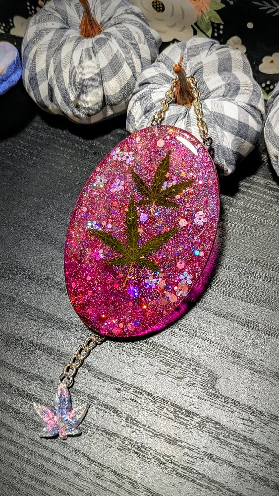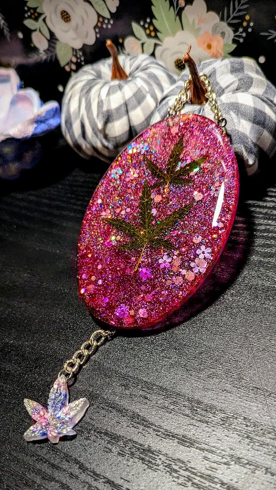 Miniature Wall Hanging with Two very Tiny Mary Jane Leaves Preserved within.